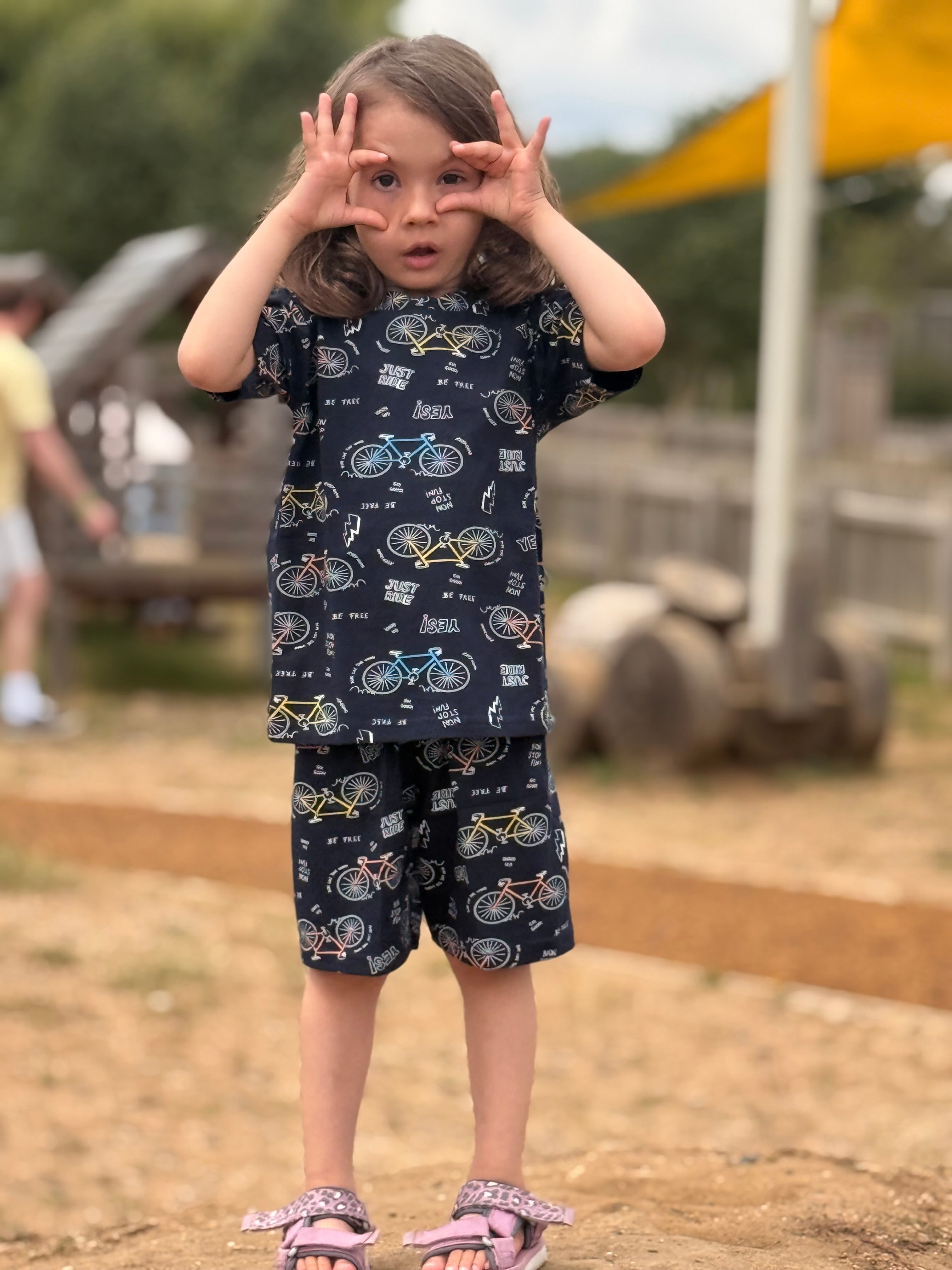 Navy Blue Kids Pure Cotton Half Sleeves Bicycle Printed T-shirt & Shorts Set